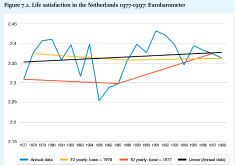 These trends are based on happiness as measured with a survey question like: "Suppose the top of the ladder represents…