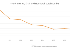 This chart covers work injuries throughout the world. As one can see, they are declining.