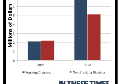 There was a 231 percent spike in the fracking industry’s political contributions to congressional candidates from districts or states home…