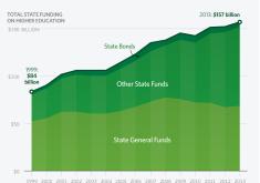 State-level spending on higher education has grown by 88 percent since 1999, an average increase of about $5 billion per…