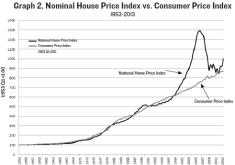 This chart compares the growth in the consumer price index to estimated national average house prices, with the egregious housing…