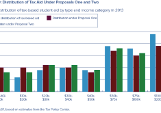 This chart shows the value of tax-based student aid by income category before and after the changes in Proposal One…