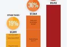 Income taxes only account for about 36 percent of the $20,667 in total taxes paid by a typical American family.