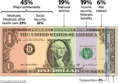 According to the chart, 45% of each tax dollar goes to entitlements, 19% to National defense (including overseas contingency operations),…