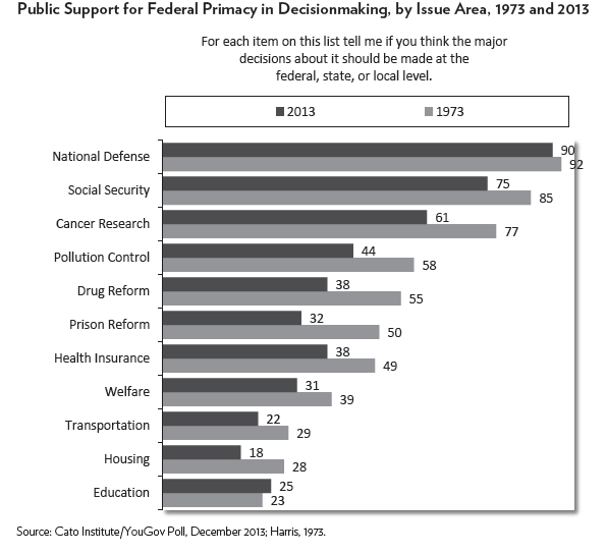 Federalism, the concept of a decentralized governmental structure, may very well be experiencing a resurgence in popularity. Since the 1970s, there has been a significant decline in the popularity of federal primacy in decision making throughout nearly all sectors of government.
