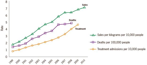 The prescription painkiller market is growing, but along with increased sales, there are also increased overdose deaths and substance abuse treatment admissions. Nearly 15,000 Americans were killed by prescription painkiller overdoses in 2008, more than 3 times the number of people killed in 1999.