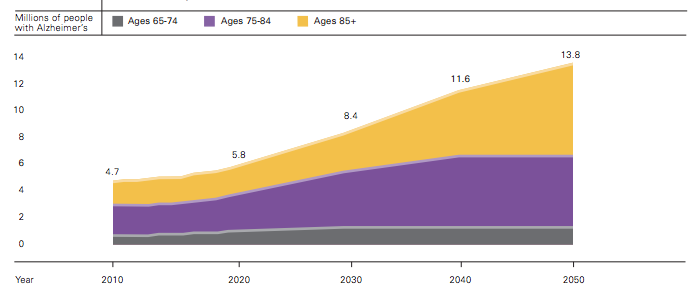 As the number of older Americans grows rapidly (due to advances in medicine and technology, as well as the baby boom phenomenon) so too will the numbers of new and existing cases of Alzheimer’s disease. By 2030, the segment of the population 65 and older is expected to grow from 13% to 20%, reaching 72 million. The increasing number of individuals with Alzheimer’s will have a marked impact on states’ health care systems, as well as on families and caregivers.