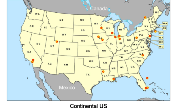 Locations of Part 121 US Civil Aviation Accidents