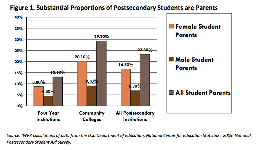 Close to half of college students no longer fit the “traditional” student model. Students with children face financial challenges to academic success, and are less likely to earn a degree or certificate within six years compared to non-parents.