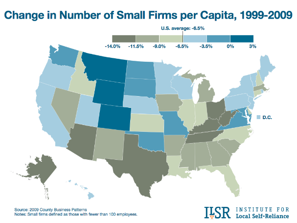 Some claim that regulations kill small businesses but the less regulated red states are losing small businesses while the more regulated blue states are gaining small businesses.