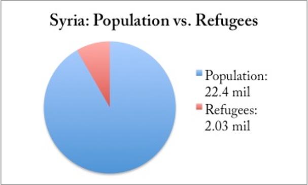 According to Business Insider, "if current trends persist, more than 3 million Syrians would have left their country by the end of 2013." That means by December, the conflict would have caused at least 13% of the Syrian population to seek refuge outside borders--not even taking into account the 5 million who have been displaced within Syrian borders.