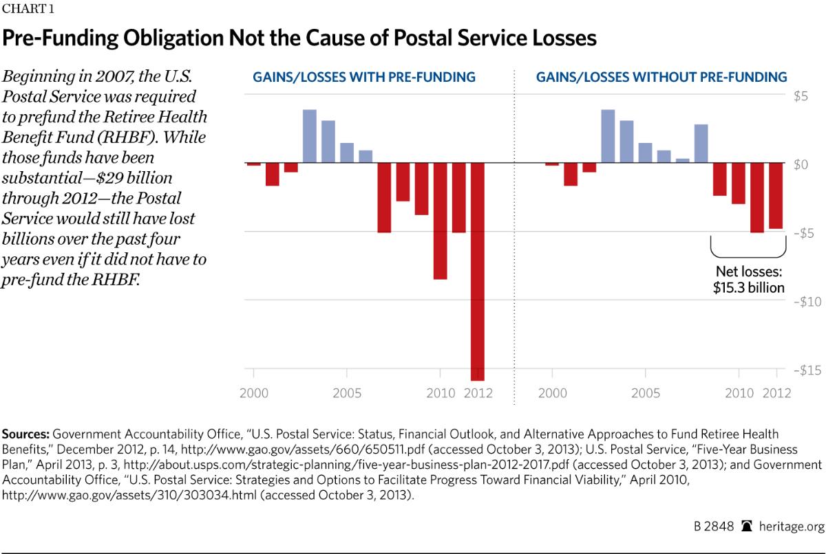 Beginning in 2007, the U.S. Postal Service was required to prefund the Retiree Health Benefit Fund (RHBF). While those funds have been substantial—$29 billion through 2012—the Postal Service would still have lost billions over the past four years even if it did not have to pre-fund the RHBF.