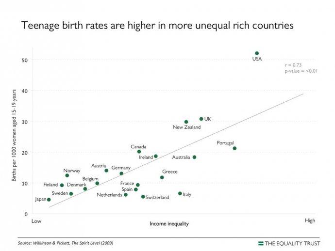 Teenage Birth Rates Higher in More Unequal Rich Countries