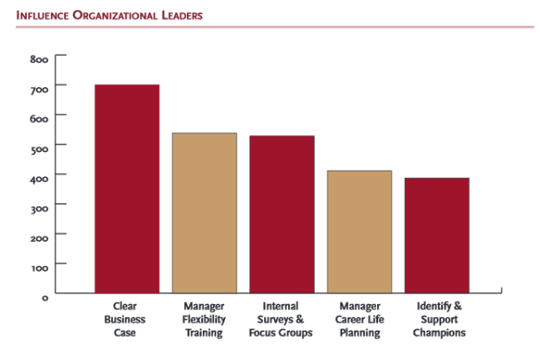 For respondents, the most important factor in influencing line managers was to “make the business case for work-life clear for business leaders.” While this has been attempted in the past with varying degrees of success, respondents felt more needed to be done through providing data, research results, and anecdotal evidence that supports the notion that work-life integration makes business sense.
