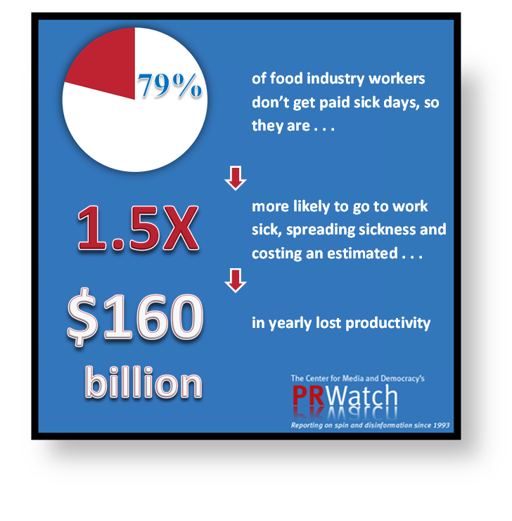 In the United States, 79 percent of food industry workers do not have access to paid sick days. These workers are then 1.5 times more likely than other workers to go to work sick, exposing employees and customers to sickness. All of this sickness costs an estimated $160 billion a year in lost productivity.
