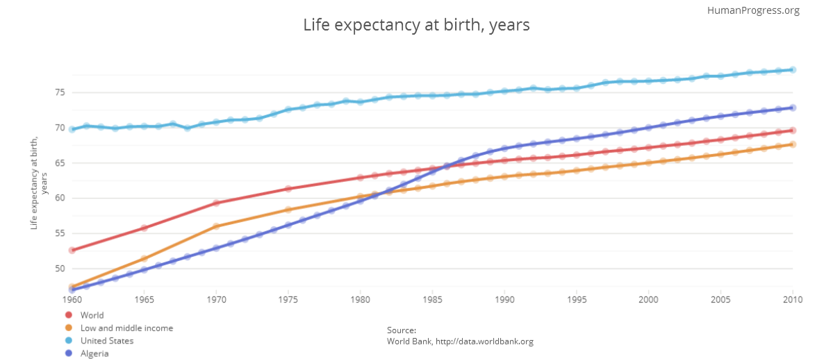 Life expectancy is on an upward trend. This includes both developed and developing countries.