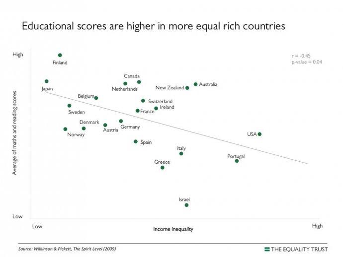 In an international analysis published in Lancet, and an analysis of the 50 US states published in Social Science and Medicine, we have shown that scores in maths and reading are related to inequality.