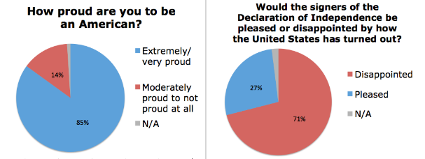 85% of Americans say they are extremely or very proud to be an American... but 71% think the signers of the Declaration of Independence would be disappointed by how the United States has turned out. For more fascinating statistics, click to read the article.