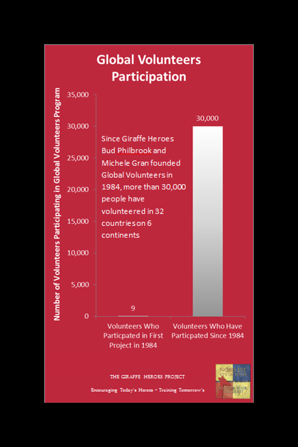 Husband and wife Bud Philbrook and Michele Gran of St. Paul MN created and direct Global Volunteers, which sends North Americans all over the world to assist on community development projects during their vacations. In the program's early years, Gran and Philbrook used their home as collateral to keep the project funded.