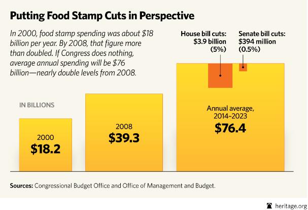 In 2000, food stamp spending was about $18 billion per year. By 2008, that figure more than doubled. If Congress does nothing, average annual spending will be $76 billion—nearly double levels from 2008.