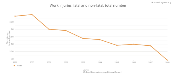 This chart covers work injuries throughout the world. As one can see, they are declining.