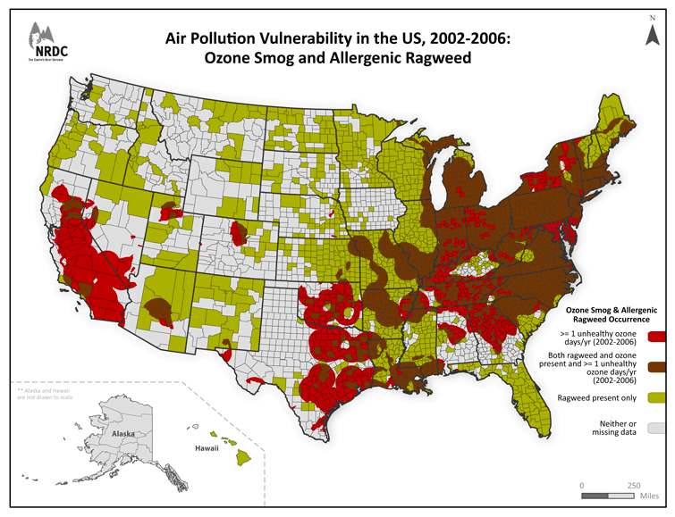 Rising temperatures can make smog pollution worse and increase the number of "bad air days" when it's hard to breathe. This puts many of us at risk for irritated eyes, noses, and lungs -- but it is particularly dangerous for people with respiratory diseases like asthma. As the climate changes, unhealthy air pollution will get worse.