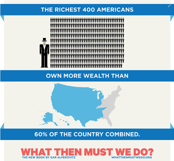 According to a medieval historian, today's wealth inequality is much worse than what prevailed in the Middle Ages. What does this mean for America? Gar Alperovitz envisions the evolution of a new economic system that would democratize the ownership of wealth. To learn more, read What Then Must We Do?