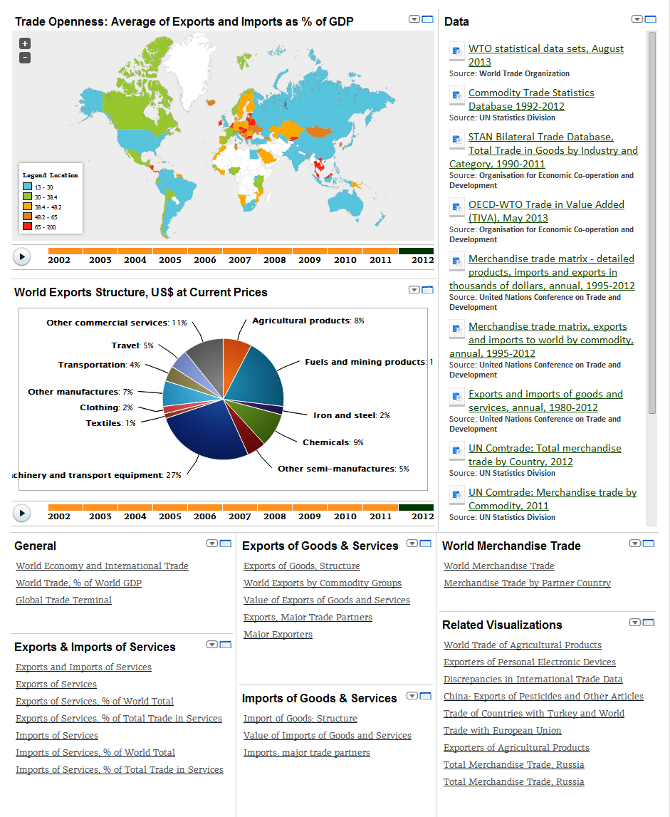 Nowadays, wide variety of goods are involved in merchandise trade, but traditional ones, such as fuels, mining products, machinery and transport still remain most tradable. International trade of services, including transport, tourism and financial services, is also gaining momentum headed by the US as the world leader in exports and imports of services.