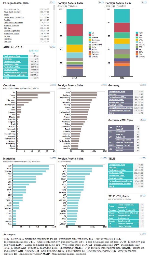 Nestlé SA - Switzerland based company - is the company with the highest level of transnationality in the world as of 2012 with in average 97% of its assets, sales and employment being foreign. At the same time, American energy giant General Electric Co has the biggest amount of foreign assets in absolute terms.