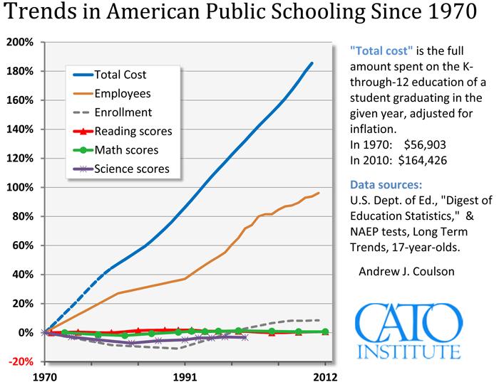 Wouldn’t it be great if we could see how well students are performing across generations? And wouldn’t it be even better if we could find out how much we’ve spent per pupil, so we could figure out if schools are getting more or less efficient? Well, what do you know, we can! The results? Not so encouraging. Read more: bit.ly/1ofLKkv