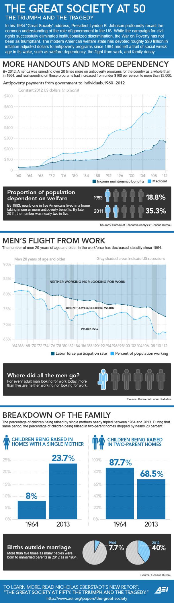 May 22, 2014, marks the 50th anniversary of LBJ's “Great Society” speech, the most ambitious call to date by any American president to use the powers of government to transform society. So impactful, it is scarcely possible for most citizens today to remember the American way of life before the huge, activist, modern welfare state came into existence.
