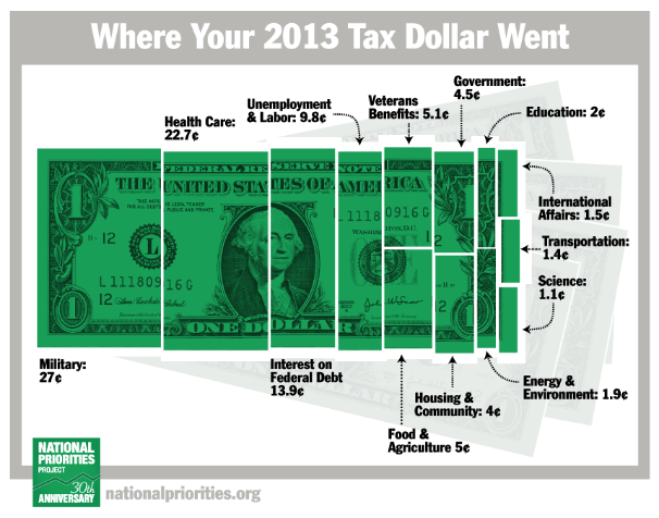 Millions of Americans filed their income taxes for the year 2013 in April, but where did those dollars go? The largest portion went to military, while the smallest portion went to science.