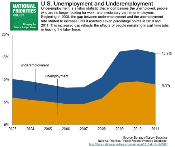 With the American unemployment rate high, the number of underemployed has also increased. People who are underemployed include those who are no longer looking for work or people remaining in part time jobs. To assess the effect of an economic downturn, we must look at not just unemployment, but also the underemployed.