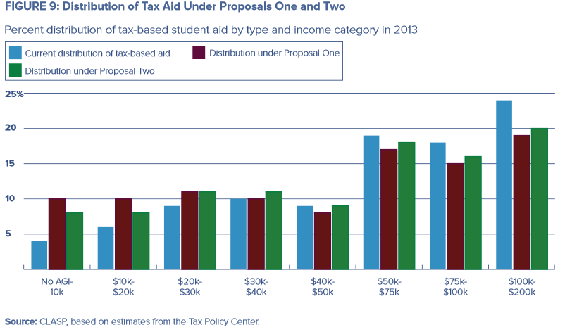 Proposal Two is an attempt to preserve the benefits of Proposal One while addressing its potential shortcomings. Both recommendations improve the targeting of tax-based student aid when compared with current policy. Read more about the differences between the two Proposals below.