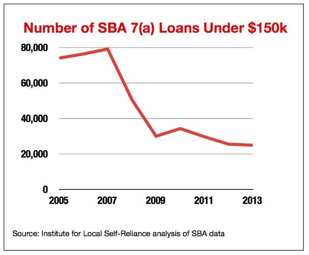 Over the last few years, the U.S. Small Business Administration (SBA) has dramatically reduced its support for smaller small businesses and shifted more of its loan guarantees to larger small businesses. The SBA's flagship loan program, the 7(a) program, guarantees up to 85% of loans under $150,000... but the number of 7(a) loans under $150,000 has declined precipitously