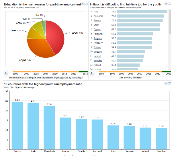 Education is the main reason for part-time employment among the youth in Europe with 41.4% of people aged 15-29 years working part time due to this reason. Denmark is the leader in this regard as 78.4% of its young population is employed part time because of education and it keeps its leading position through the years.