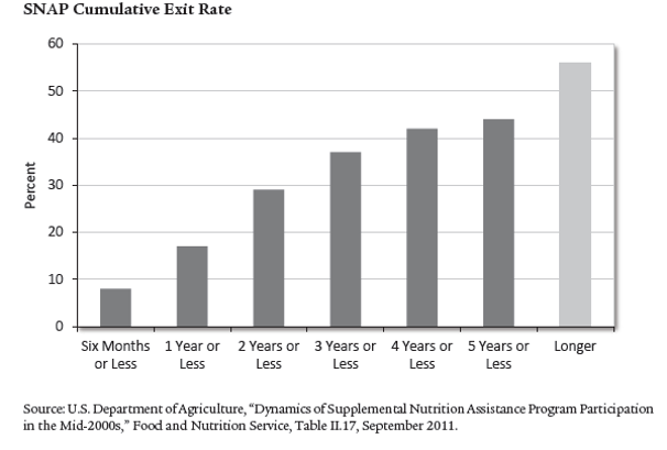 The Supplemental Nutrition Assistance Program, more commonly known as Food Stamps, is similar to other welfare programs in that it runs the risk of making its recipients dependent on the government. A whopping fifty-six percent of recipients utilize the Food Stamps program for longer than five years, thus negating its intended purpose as a temporary safety net.