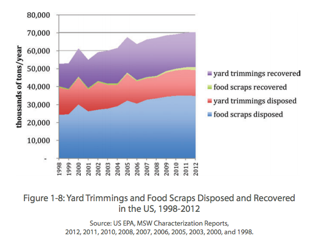 This chart shows the amount of municipal food scraps and yard trimmings generated and recovered over the last 15 years, according to US EPA data. In 2012, 58% of yard trimmings were composted... but food scrap recovery remained low at just 4.8%. Learn more about the State of Composting in the U.S.: www.ilsr.org/state-of-compost…