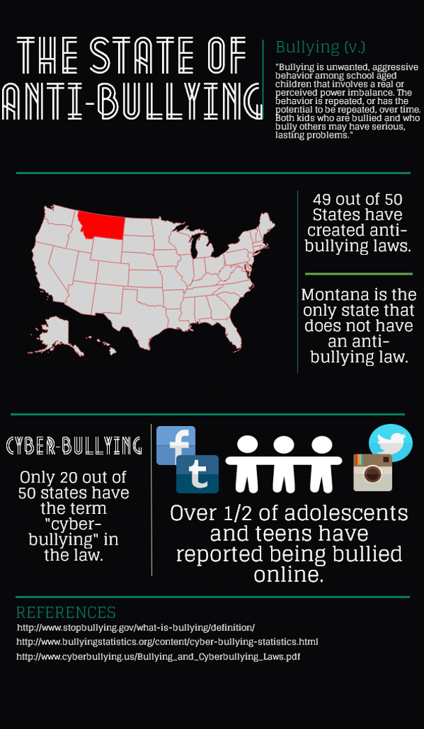 Bullying is a problem in schools, where it happens face-to-face, and in cyberspace, where the seeming anonymity of the internet is home to cyber-bullying. All states but one (Montana) have put in place laws against bullying, while only 20 of these states' laws explicitly include cyber-bullying. Do you know what your kids are doing and saying online?