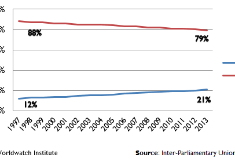 Women as a percentage of all national legislators around the world have nearly doubled their numbers since 1997. Change has…